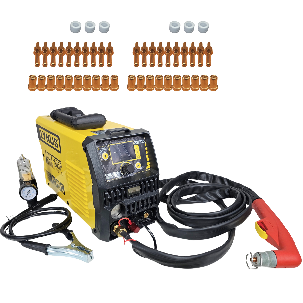Inversora Corte Plasma Lynus Plasma 50 Alta Frequência 220V | Corte 20/22mm | Corte Plasma com Ar Comprimido | Máquina de Corte Portátil para Serralheria e Metal + Consumiveis