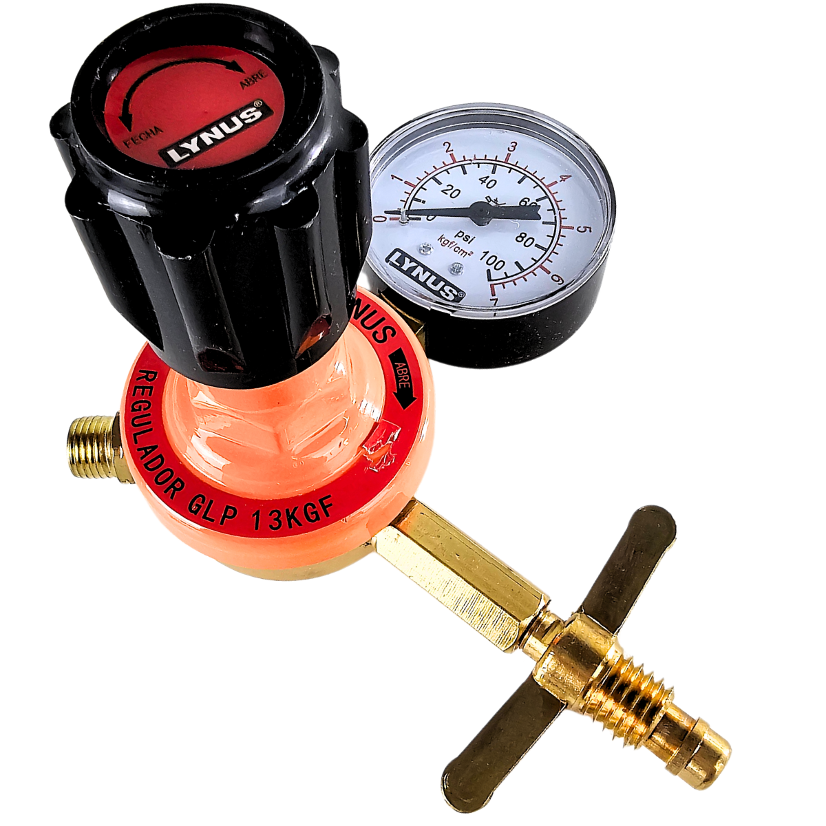 O Regulador de Pressão Lynus para GLP P13 foi desenvolvido para garantir controle preciso, segurança e estabilidade no uso de botijões de gás GLP 13kg. Sua função é reduzir a pressão do gás do cilindro para uma saída regulada conforme a necessidade do usuário, mantendo constância mesmo com variações de pressão na entrada.