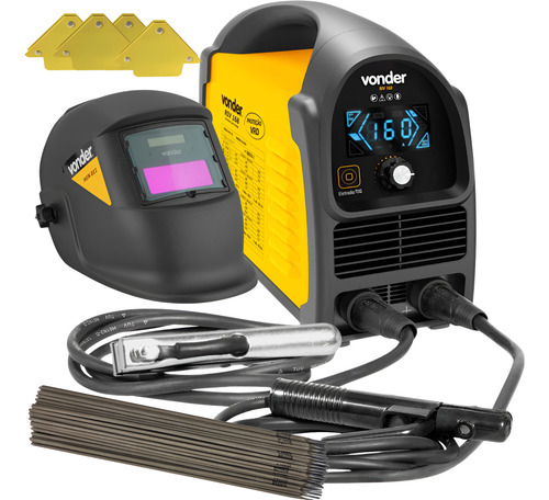 Máquina Inversora de Solda Vonder RIV 168 – Sem Gás | Bivolt Automático | 160A DC | Eletrodos até 4 mm | Solda Aço Carbono, Inox, Cobre e Latão + Máscara, 4 Esquadros Magnéticos e 1 kg de Eletrodos