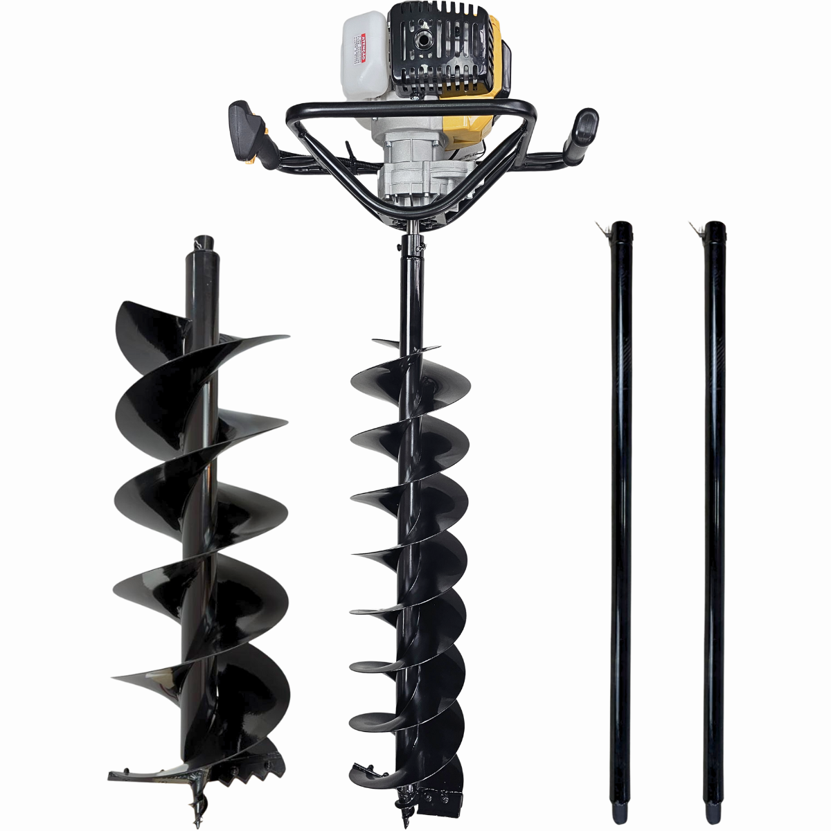 Perfurador de Solo 52cc Buffalo com Brocas 20 cm e 25 cm + 2 Alongadores de 1 Metro | Encaixe 20 mm | Kit Completo para Plantio, Cercas e Reflorestamento